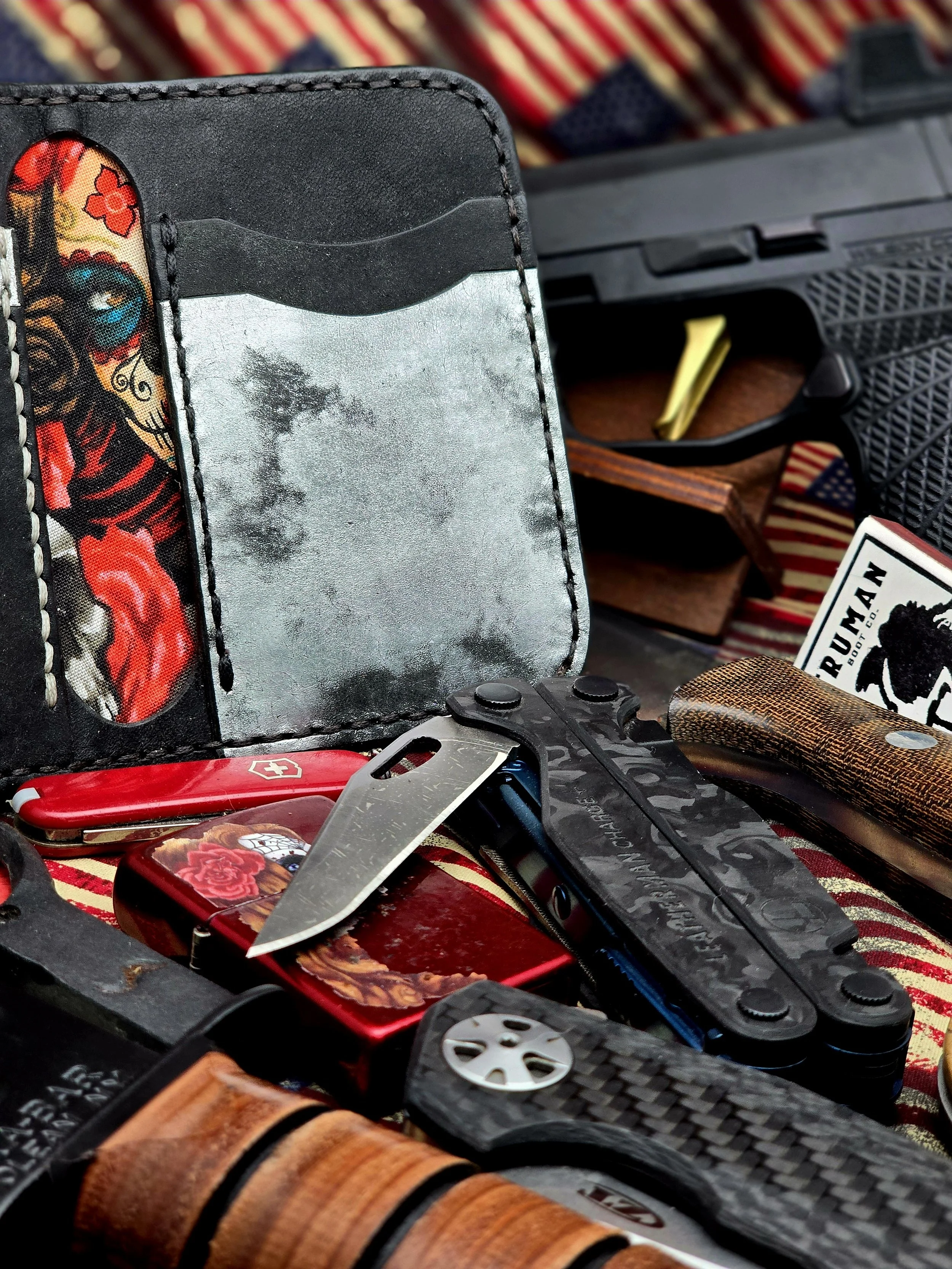 I joined the Marine Corps in 2009 and was discharged in 2012. After 10 surgeries and both feet reconstructed in 2014, I discovered leather work. My first piece was a multi-tool case, and despite its flaws, I was hooked. In 2019, I made my first wallet and fell in love with the process. Now, I create wallets exclusively, viewing each one as a piece of art. I guarantee top-quality craftsmanship and unique, long-lasting wallets.